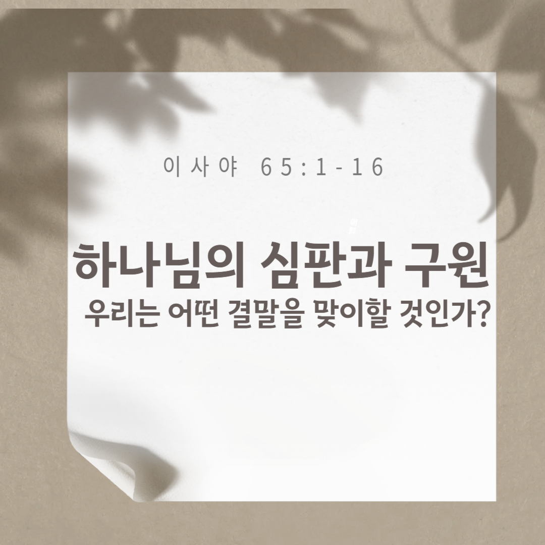 하지만 이 질문에 대한 하나님의 대답은 다음 장, 이사야 65장에서 이어집니다.