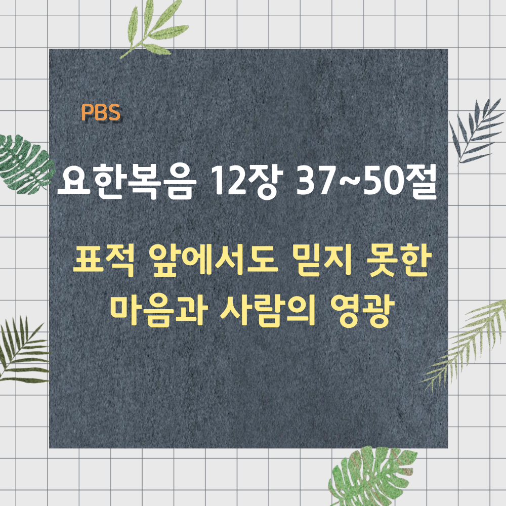 - 요한복음 12장 후반부는, 지금까지 나타난 예수님의 놀라운 표적과 기사 앞에서 사람들이 보인 다양한 반응을 종합하며, 그 의미를 결론적으로 정리하는 부분이다.