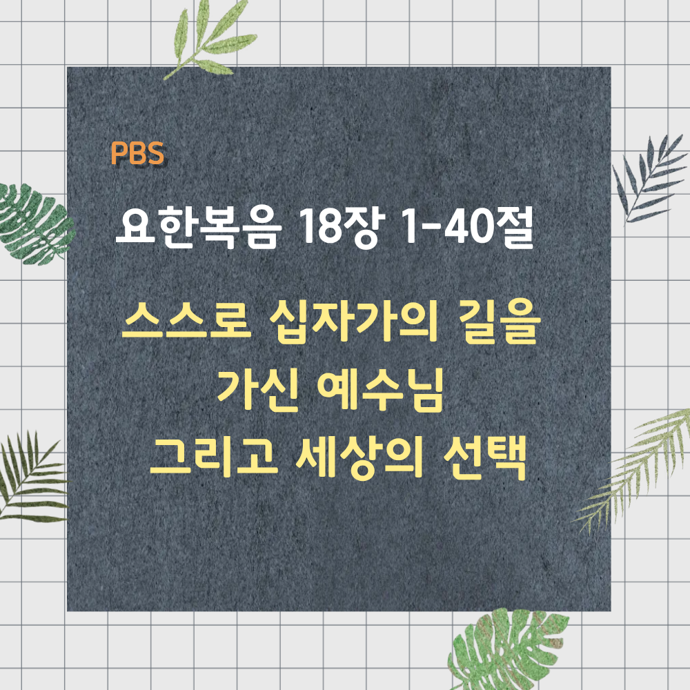 예수님은 자신에게 닥칠 일을 아시고도 피하지 않으시고 “내가 그니라” 하시며 스스로 나아가신다. 이는 십자가가 강요된 고난이 아니라 자발적인 순종임을 보여준다.