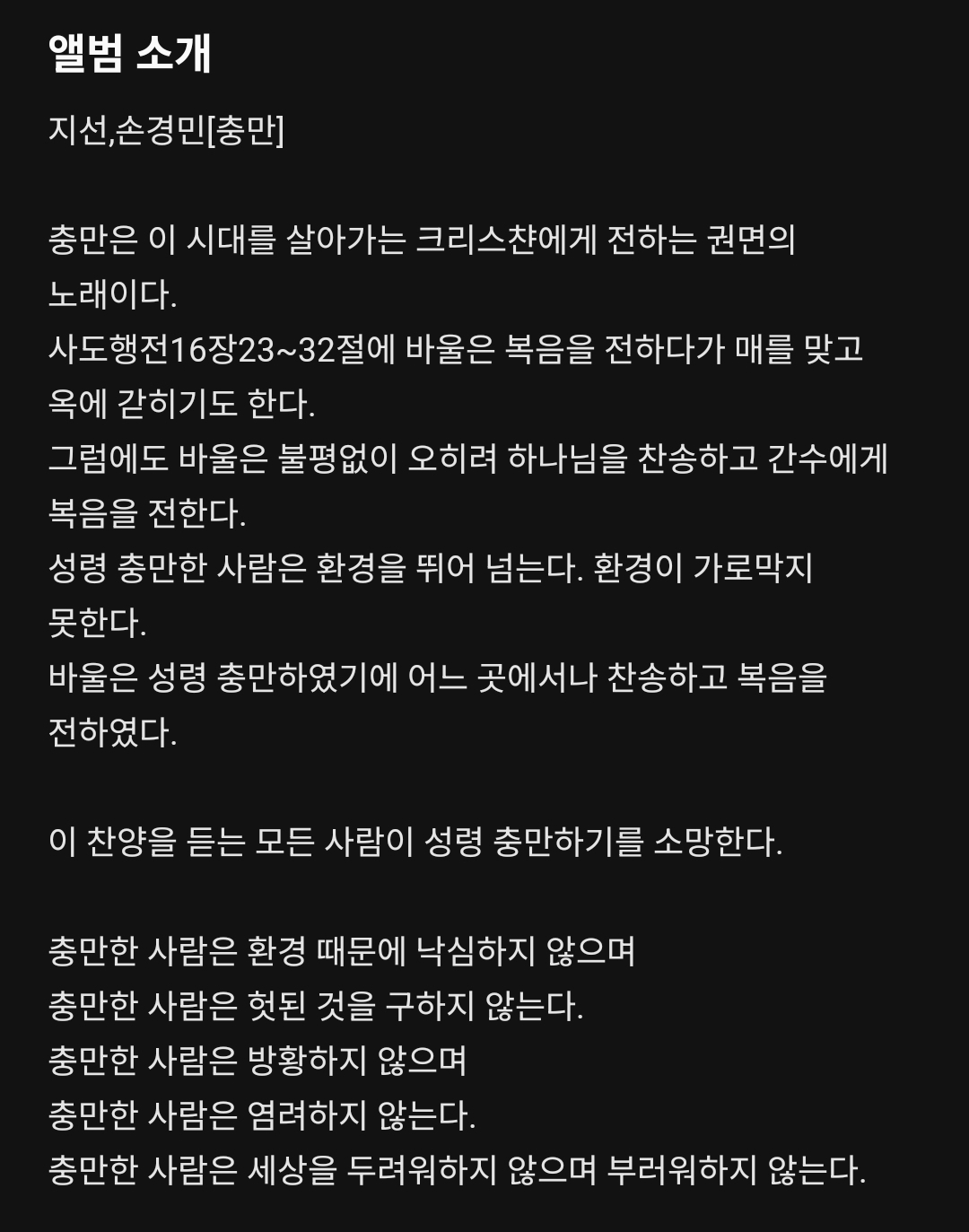 2. 충만 앨범 소개와 가사