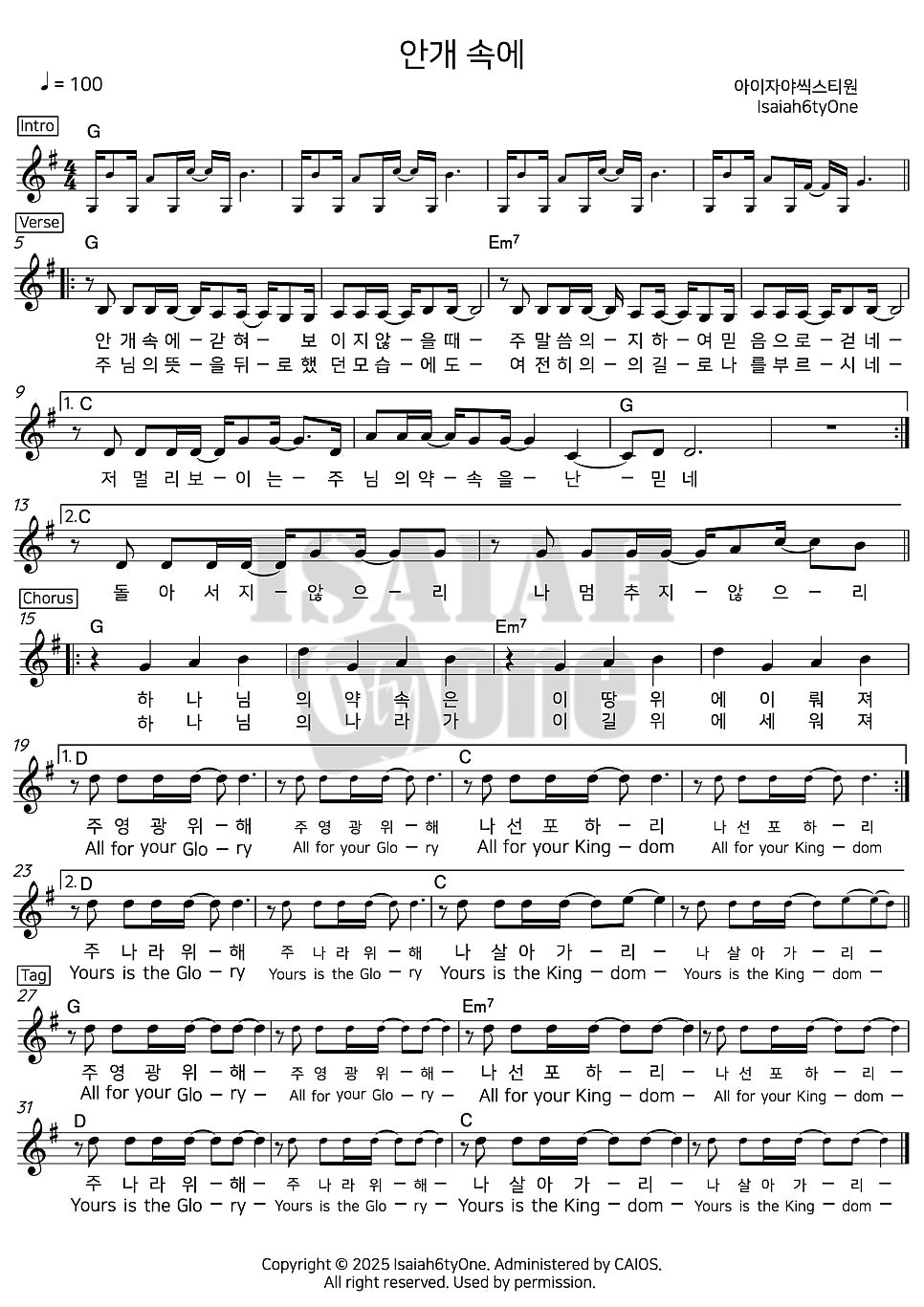 아이자야씩스티원 홈페이지에 회원가입을 하시면 찬양 악보 리드시트 및 파트별 악보도 다운받을 수 있습니다.