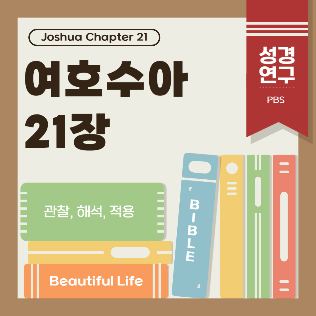 여호수아 21장은 모든 지파의 땅분배와 도피성 지정까지 마친 후 마지막으로 레위 족장들이 실로로 나아와 거주할 성읍과 목초지를 요구하고 제비 뽑은 순서대로 성읍의 분배가 이루어지는 장면과 하나님이 여호수아를 통하여 선포하셨던 안식이 가나안 땅에 찾아오는 내용이 나옵니다.