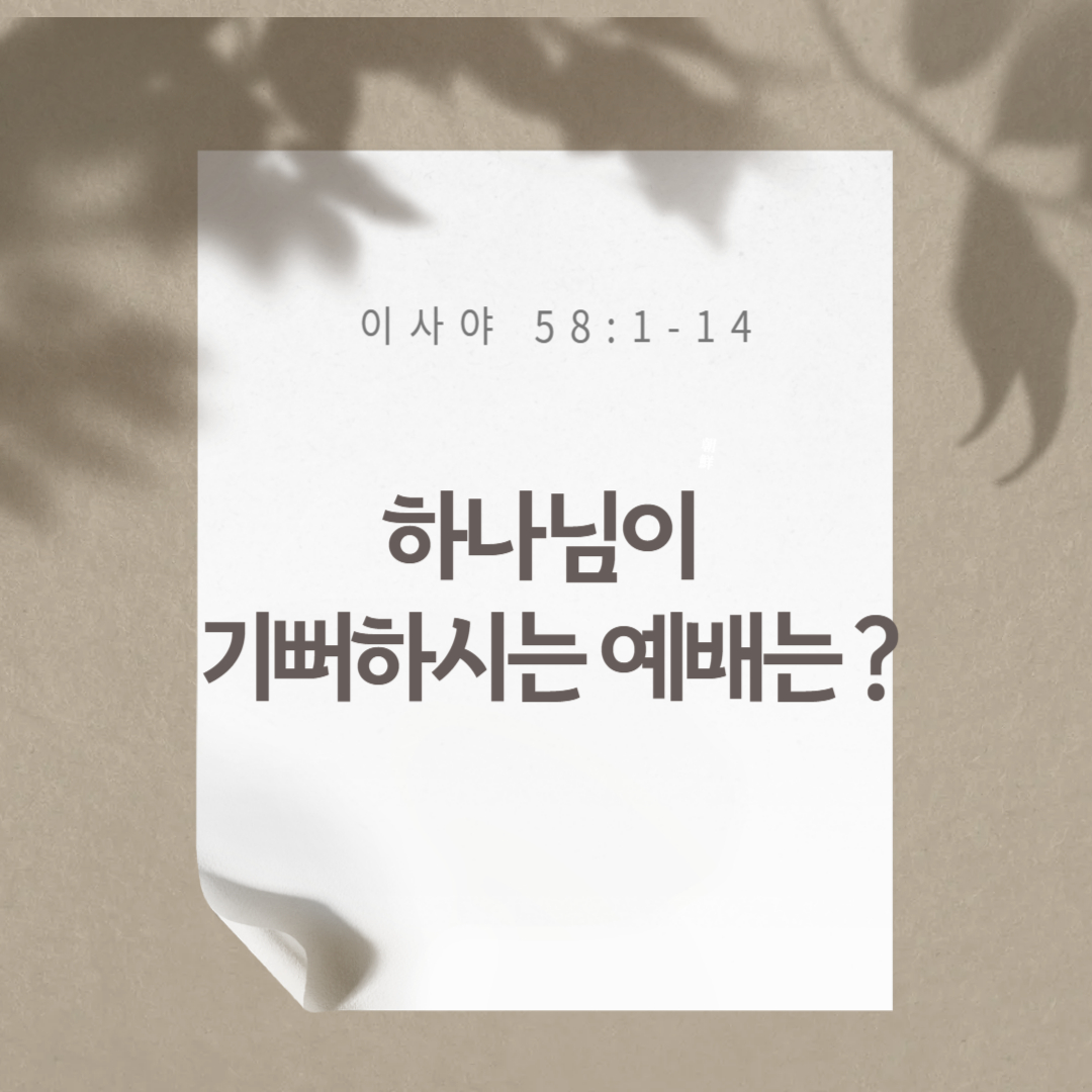 그리고 이어지는 이사야 58장은 ‘참된 금식’과 ‘하나님이 기뻐하시는 예배’에 대한 깊은 통찰을 줍니다.