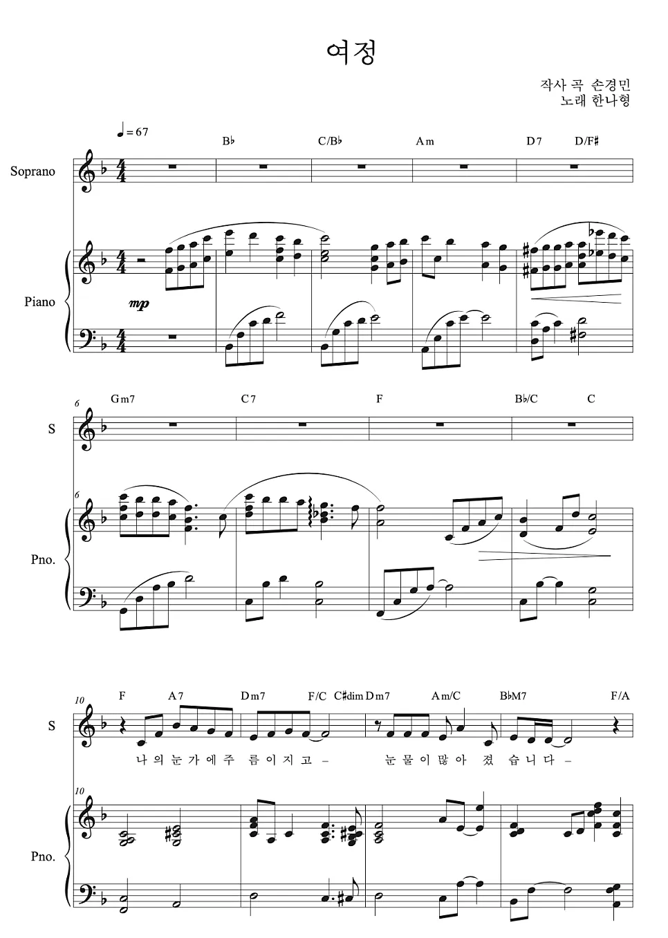 여정 - 피아노반주 악보