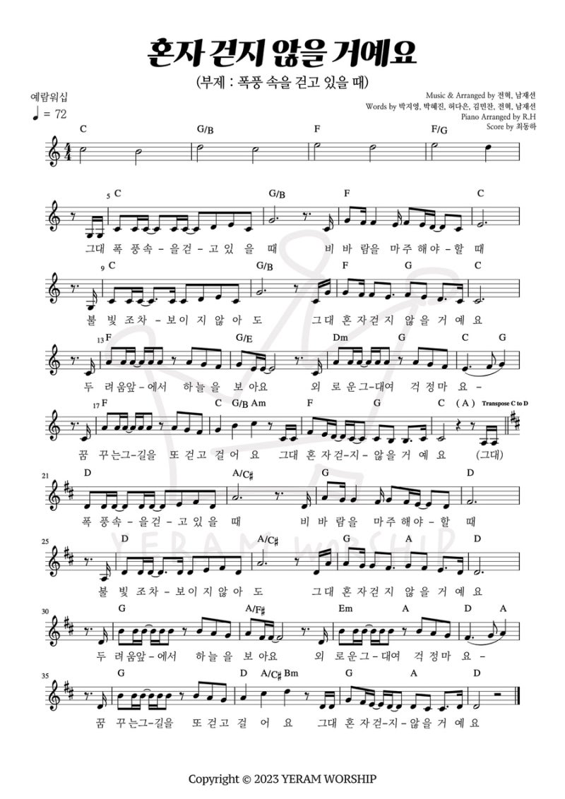 혼자 걷지 않을 거예요는 23.11.19일 발매된 예랍워십 EP 앨범의 3곡중 마지막 트랙3번 곡입니다.