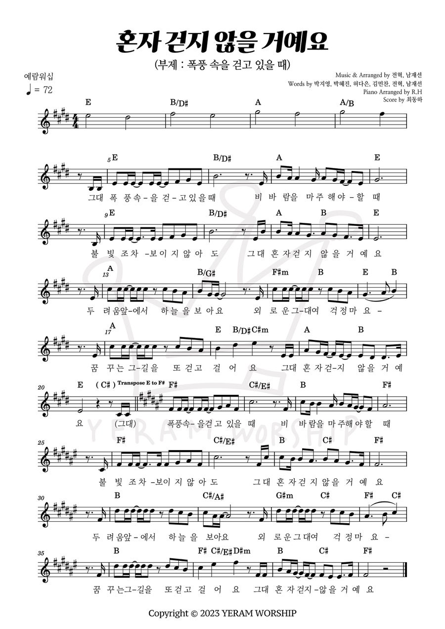 예람워십 혼자 걷지 않을 거예요 | 찬양감상 · 가사 · 악보